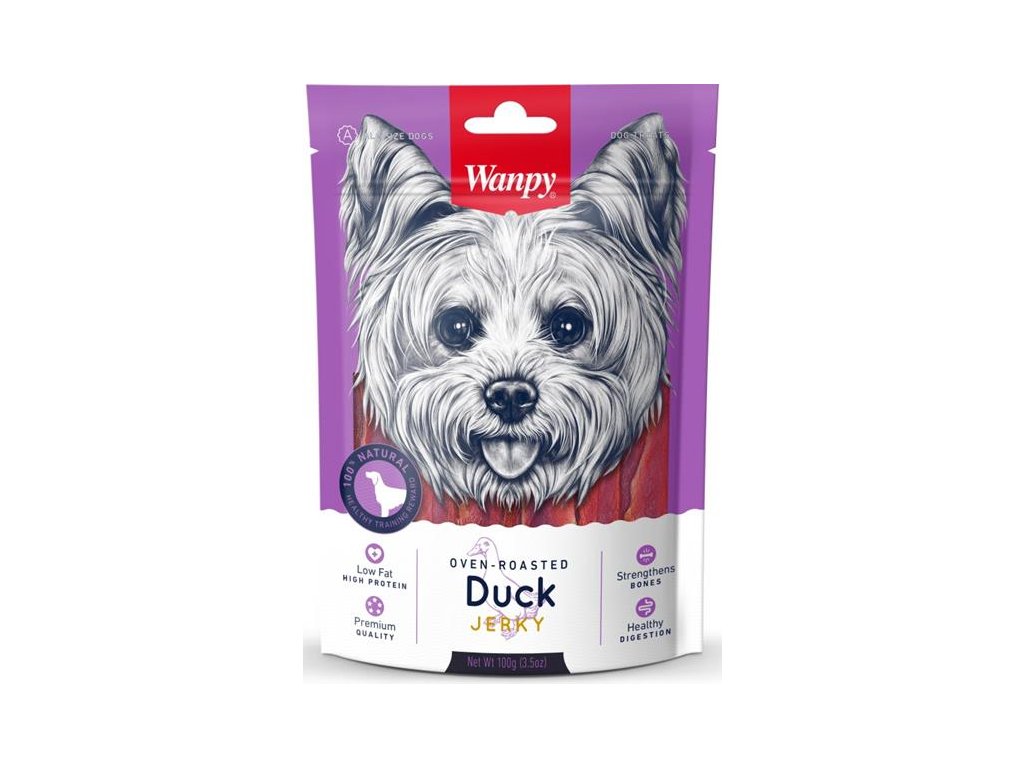 100% přírodní pamlsek vhodný jako odměna při výcviku. Přednosti: nízký obsah tuku, vysoký obsah bílkovin, prémiová kvalita, prospívá zdraví kostí, podporuje trávení. Složení: kachní maso, rostlinný protein, glycerin, sůl. Analytické složky: hrubý protein 58 %, hrubý tuk 2 %, hrubá vláknina 0,5 %, hrubý popel 6 %, vlhkost 18 %. Krmný návod: Podávejte jako pamlsek mezi jídly nebo jako odměnu při výcviku. Zvířeti zajistěte stálý přístup k čisté pitné vodě. Upozornění: Pohlcovač vlhkosti v přiloženém sáčku není určen ke konzumaci.Doplňkové parametry